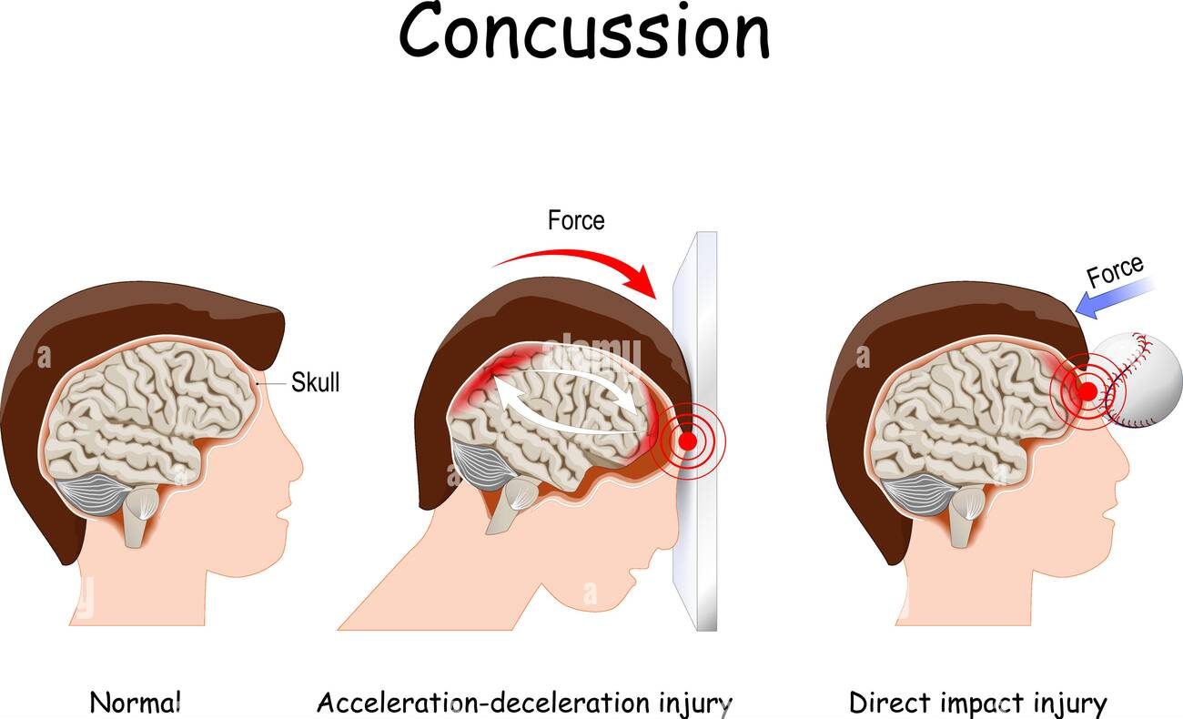Our brain is very soft and similar to jello so it can be damaged very easily, for this reason it is protected by a layer of fluid, the cerebrospinal fluid, which surrounds it keeping it cushioned against everyday jars and bumps. Because our brain is floating is cerebrospinal fluid when we receive a severe hit to our head it causes the brain to slam into our skull and depending on the force of the hit and how much of the brain made contact with the skull, the concussion can be mild with no loss of consciousness to severe with loss of consciousness.