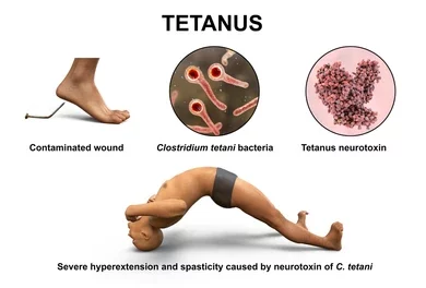 Tetanus also called “lock jaw” is a serious disease caused by a bacterial infection. Tetanus is considered an international health problem. The World Health Organization estimates that there are approximately 1 million diagnosed cases of tetanus every year worldwide. It is more common in under developed countries with an average of 31 cases per year in the US with approximately 11% of those diagnosed cases being fatal. This is the only vaccine preventable disease that is infectious but not contagious. In the US almost all cases of tetanus occur in people that have either never been vaccinated for it or have not kept their vaccination up to date.