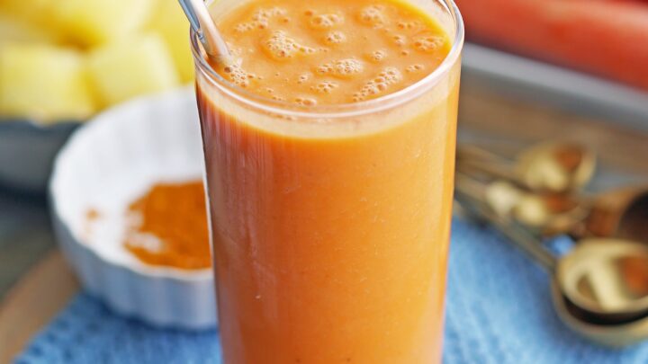 - Add to blender: Combine carrots, pineapple, orange juice (or coconut water), yogurt, ginger, and honey.