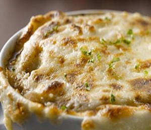Place the oven rack on the top slot and preheat your oven to F 350. Prepare your soup bowl by placing a piece of the sliced and toasted bread at the bottom. Pour a ladle full of soup with lots of onions into the bowl, careful not to fill to the rim. Add 2 tablespoons of the Parmesan cheese to the top of the soup and place two slices of the Swiss cheese on top. Place the soup into the oven on the top rack and broil for 20 minutes or until the cheese has browned and started to bubble. Carefully remove soup from oven with oven mitts and set aside to cool off for 5 minutes then serve.